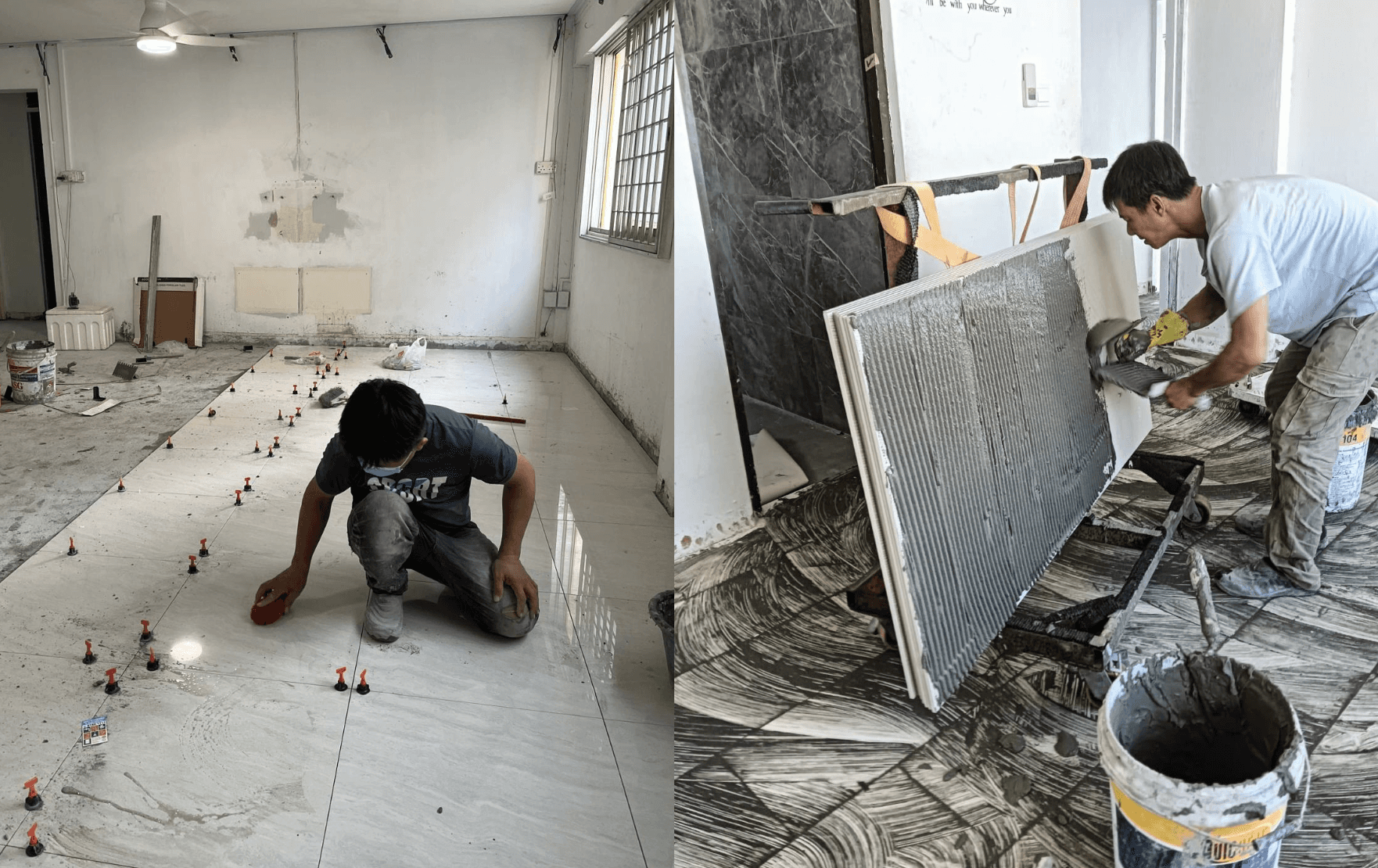 Large Format (1200x600mm or 800x800mm) | Requires 2 man to lay tiles due to heavier handling and more effort to cut tiles to fit | Add $2.00 per sq ft |